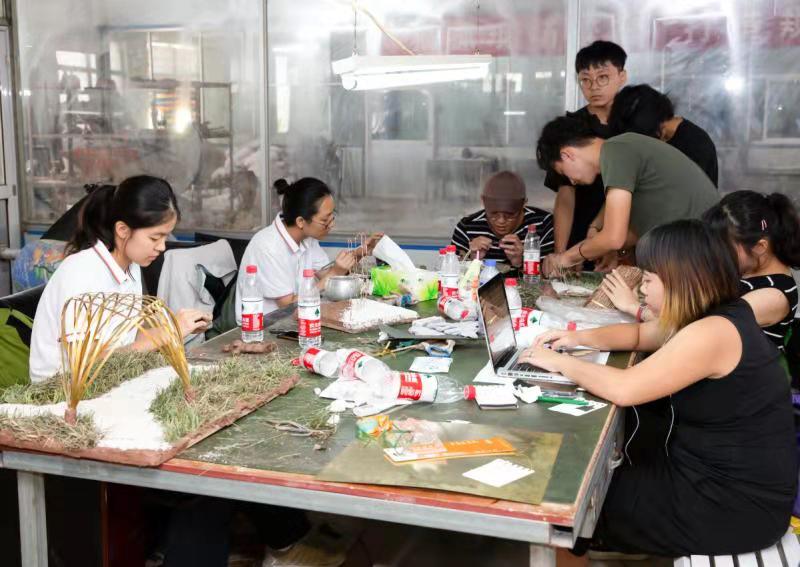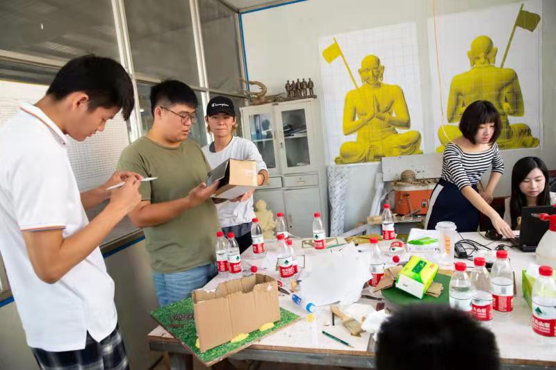 老師與學(xué)生們分組討論對(duì)銅藝小鎮(zhèn)局部改善的方案